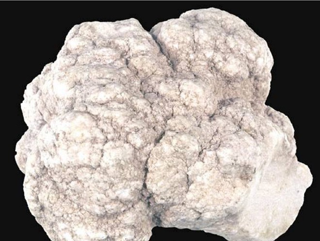 白硼鈣石是一種土狀的硼酸鹽礦物,為含水的硼酸鈣,它可以成致密狀塊體或結核狀產出,有些塊體還非常巨大。常產在石膏或粘土層的下面。白硼鈣石的化學式為4CaO·5B2O3·7H2O,人工合成白硼鈣石的方法主要有水熱合成法,顆粒能達到從幾微米到幾十微米。